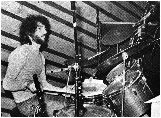Ron was working on the layout for the October 1978 Steve Gadd cover story on my first visit. We both loved Gadd’s drumming, and talked about how Steve looked very unhealthy in the Aran Wald story photos. We were worried about him! Gadd was very thin with large, dark bags under his eyes. He was in a recording studio playing a five-piece single-headed Ludwig drumset, Evans heads on the toms, a very worn, white-coated head on the snare. Two paper towels taped left/right on snare top head for dampening.