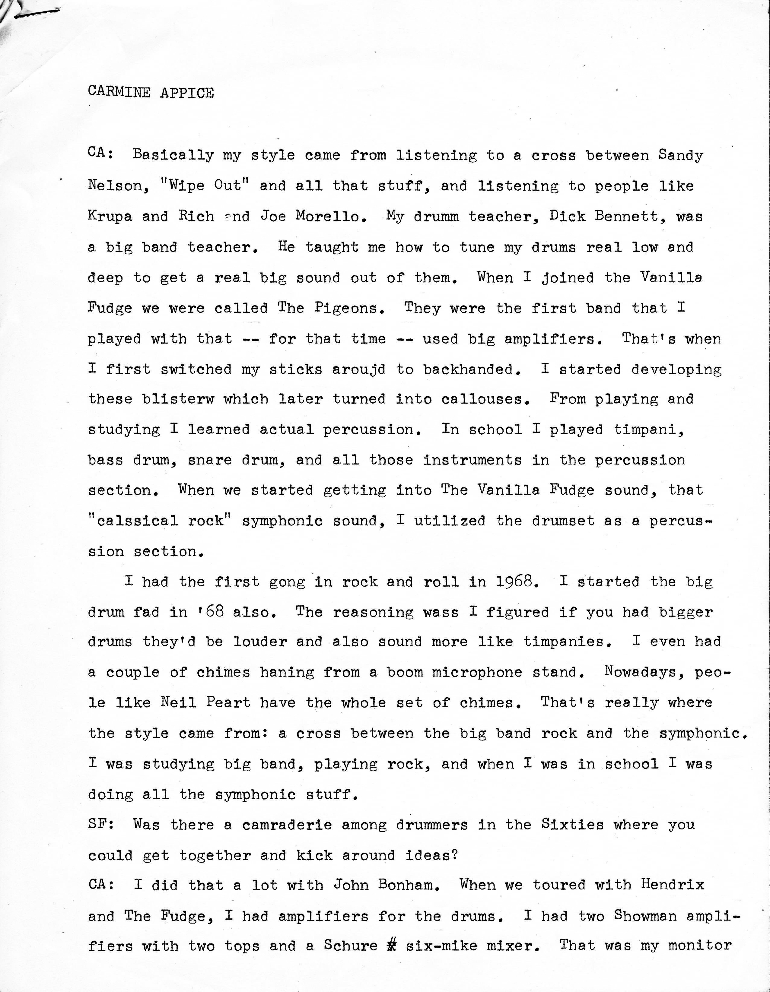 SKF NOTE: From my interview with Carmine Appice circa 1980-81.