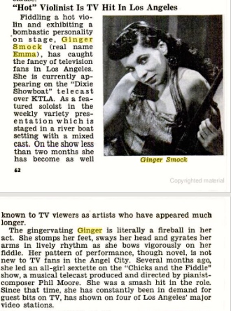 Also, Sharkey Hall mentions working in a trio led by violinist Ginger Smock. Thanks to the internet, there is info available on Ginger Smock, including YouTube videos of her playing jazz violin. She was good!