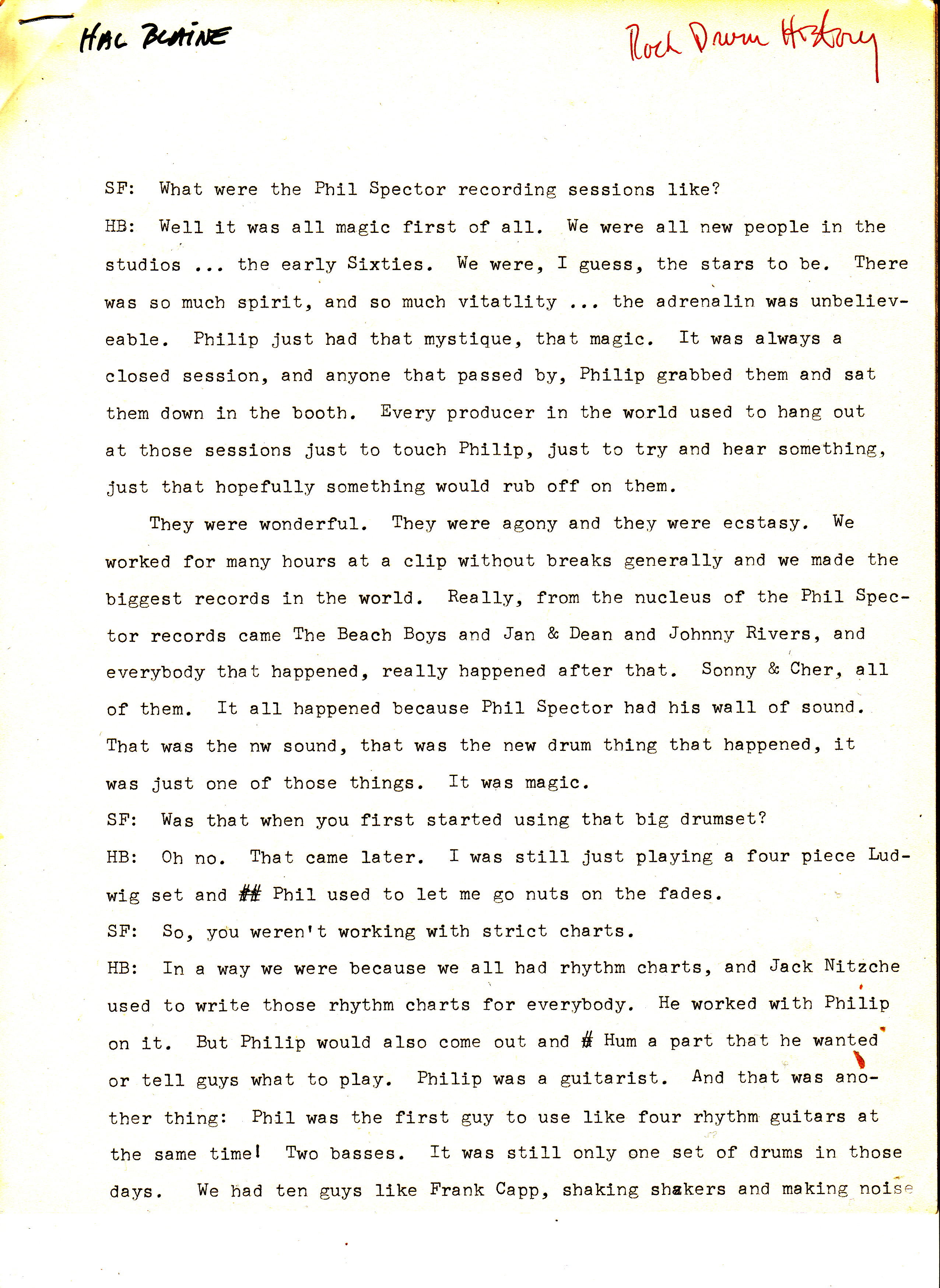 SKF NOTE: This Hal Blaine interview is another of my backgrounder interviews for my History of Rock Drumming feature series for Modern Drummer in the early 1980s. This interview is published here for the first time. All of these interviews can easily be accessed here by clicking the Backgrounder Interviews link.
