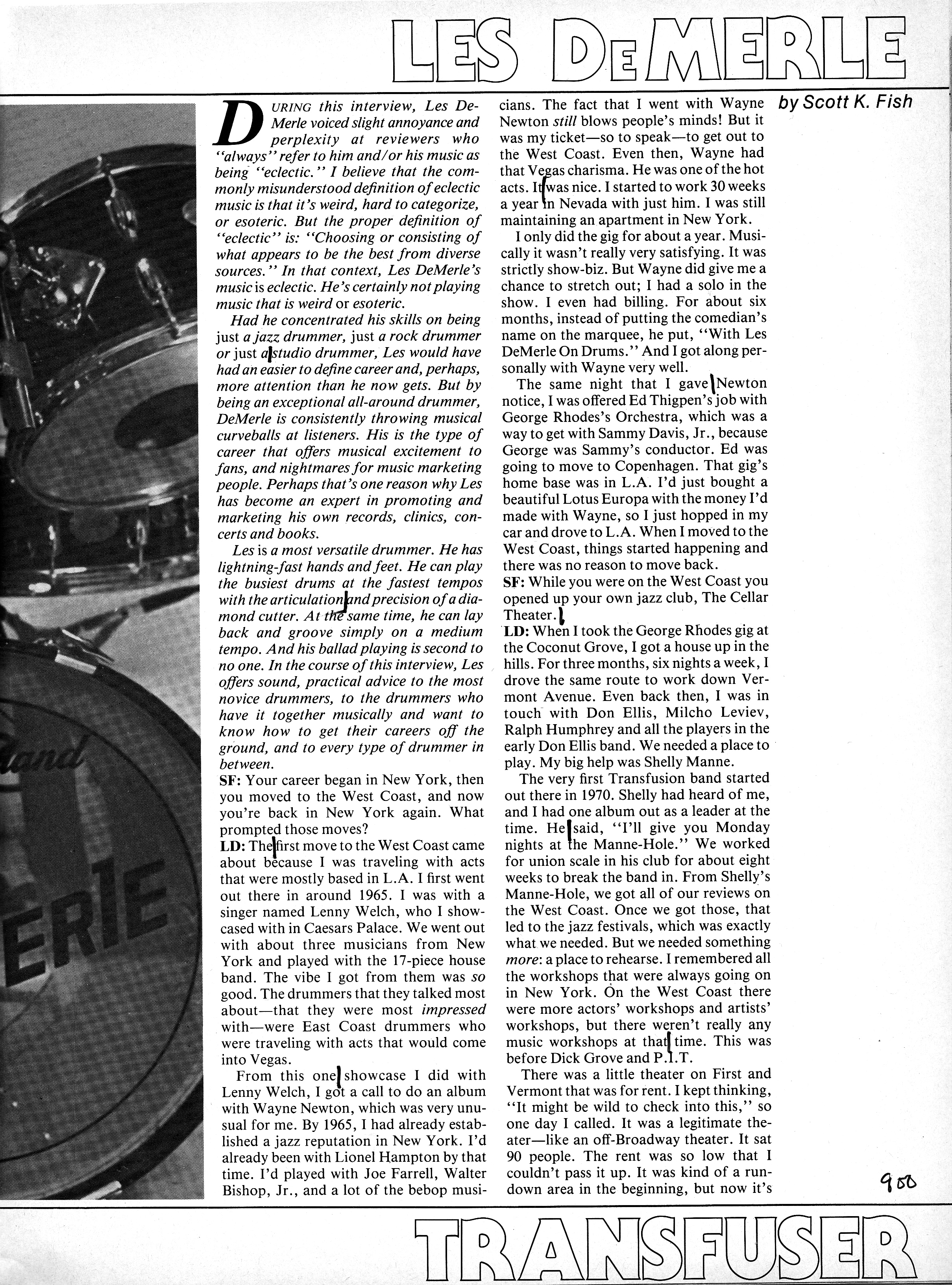 When I left Modern Drummer in October 1983 I was still working on a handful of feature interviews — including this Les DeMerle interview. Apparently MD founder/publisher Ron Spagnardi and I agreed I would be paid for that handful of feature interviews X-cents per published word.