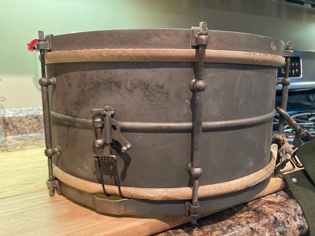 Fred told me he had an old drum I might be interested in. His grandfather presented to Fred when Fred was a kid. “I never did much with it,” Fred told me. “My parents kept hiding it.”