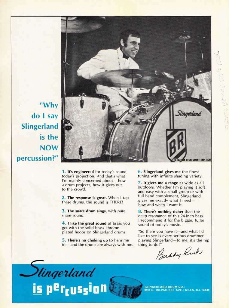 Whether I was watching Rich performing on tv, on an album, or in concert, he was always playing a Slingerland drum set that looked exactly like the set in this 1968 drum ad.