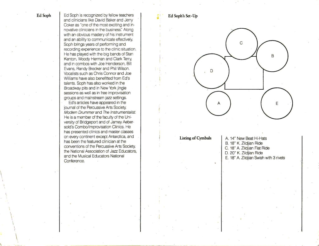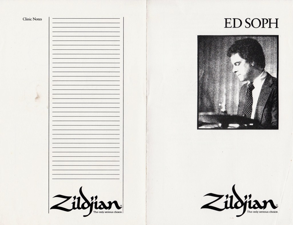 SKF NOTE: A “for the record” post of a 1980s Ed Soph Zildjian Cymbal Set-Up pamphlet.