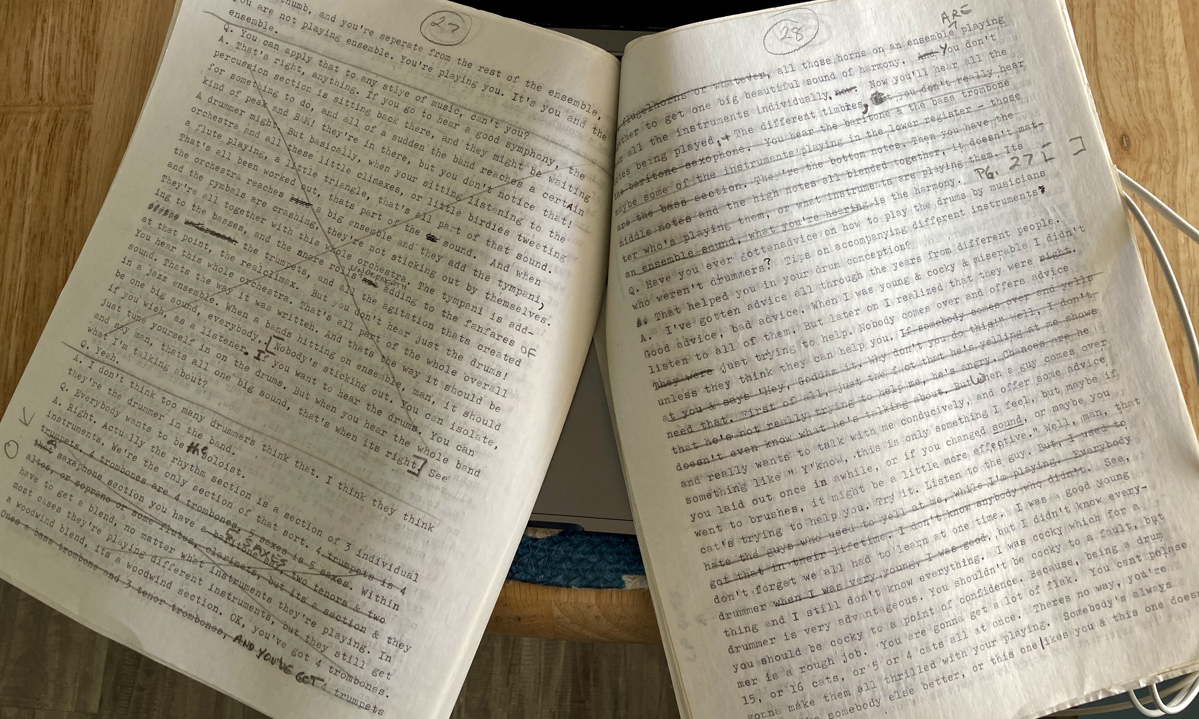 You can see in the photo I’ve included with this post, large sections of Mel’s interview cut from the final product. MD feature interviews had word limits, and Mel’s full transcript was way over the limit. So some things had to go.