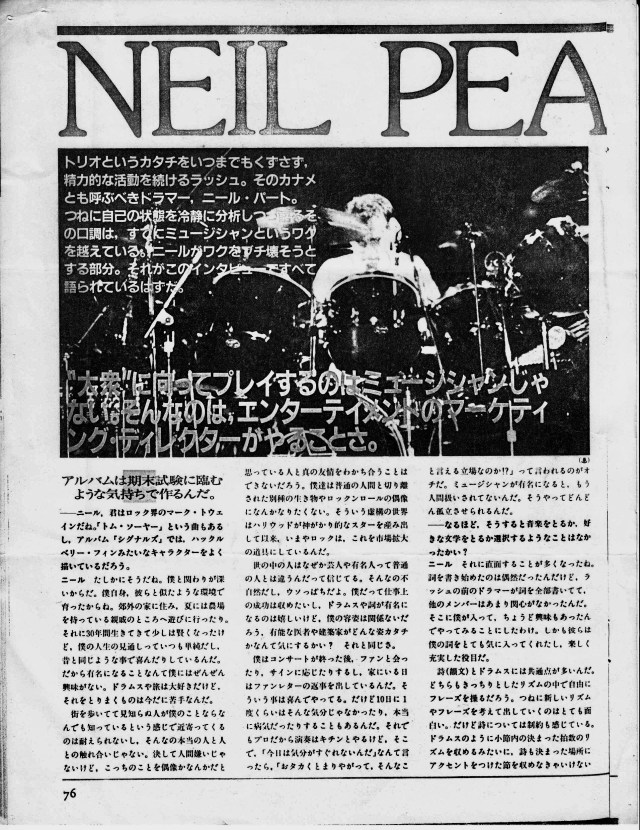 SKF NOTE – This 1984 Japanese translation of one of my Neil Peart Modern Drummer stories has been with me since 1984.