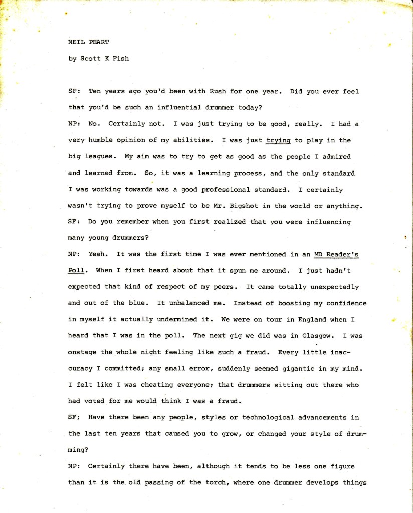 After transcribing and editing our conversation using a typewriter, I submitted this finished manuscript for publication to Modern Drummer.